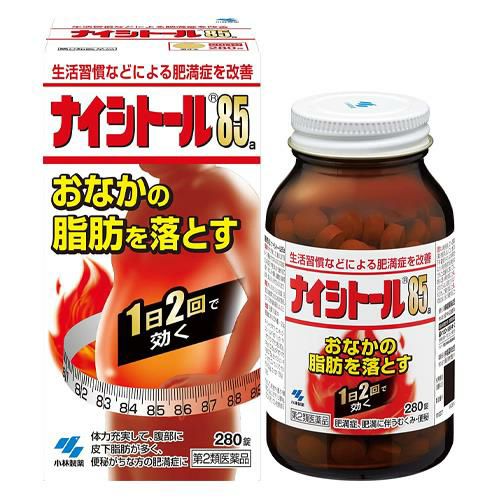 他の画像を見る 内臓脂肪を分解・燃焼しておなかの脂肪を落とし、生活習慣などによる肥満症を改善 【第2類医薬品】 ナイシトール85a 280錠 - 小林製薬 [セルフメディケーション税制対象] [防風通聖散/ボウフウツウショウサン] 定価 ¥ 4,950 販売価格 ¥ 4,730 税込 送料無料 「小林製薬 ナイシトール85a 280錠」は、体に脂肪がつきすぎた、いわゆる脂肪太りで、特におなかに脂肪がたまりやすい方、便秘がちな方に適しています。 詳細を見る お気に入りに登録する