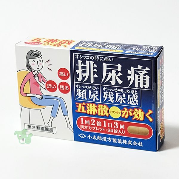「五淋散カプレット コタロー 24錠」は、かぜや、冷え、疲れ、あるいは排尿を長時間我慢したことが引き金となって起こる頻尿、排尿痛など、患部に不快感や残尿感がのこっていたり、すぐまた再発するような泌尿器の炎症に用いられる漢方薬です。