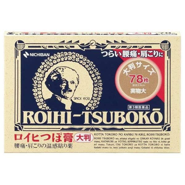 「ロイヒつぼ膏」は、有効成分(ノニル酸ワニリルアミド)の温感刺激により患部の血行をよくし、肩こりや腰痛の症状をやわらげる小型丸型の温感タイプはり薬です。一人でも貼りやすく、狙ったコリにピンポイントで効きます。