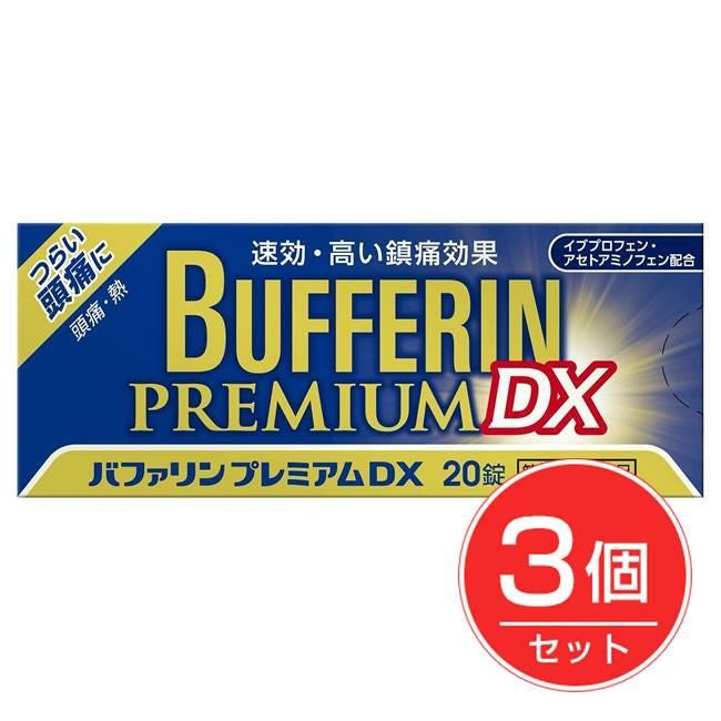 「バファリンプレミアムDX 20錠×3個セット」は、バファリンプレミアムと比べ、鎮痛成分を約20%増量。末梢神経に作用するイブプロフェンと中枢神経に作用するアセトアミノフェンがダブルで痛みをブロックします。胃にやさしく、眠くなる成分は入っていません。
