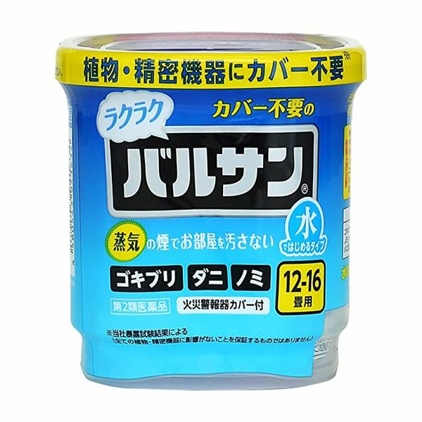 「水ではじめるラクラクバルサン 12~16畳用 12g」は、植物・精密機器にカバー不要のくん煙剤です。くん煙前の事前準備がラクラク。※蒸気の煙でお部屋を汚しません。隠れたゴキブリ・ダニ・ノミを徹底駆除。水を入れるだけの簡単始動です。12~16畳用。 ※当社暴露試験結果による(すべての植物・精密機器に影響がないことを保証するものではありません)