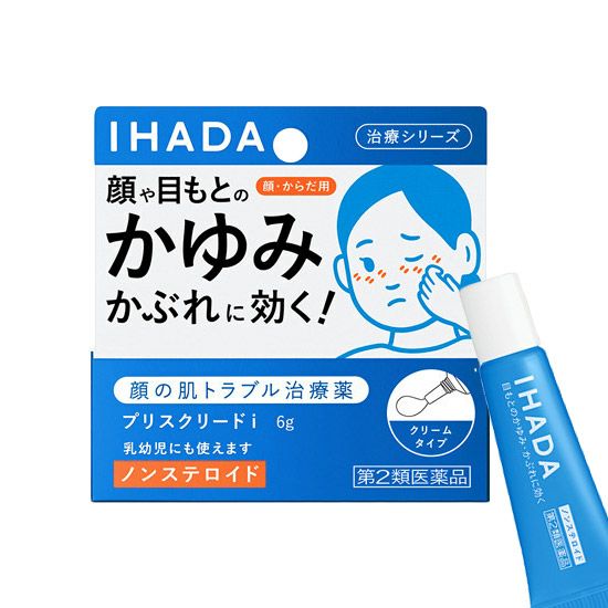 「イハダ IHADA プリスクリードi 6g」は、かゆみ止め成分配合のノンステロイド治療薬。目もとがテカらないクリームタイプで、適量をとりやすい先細チューブを採用しています。
