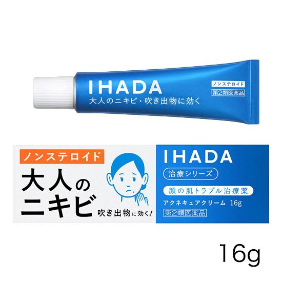 「イハダ IHADA アクネキュアクリーム 16g」は、消炎&殺菌のW有効成分が、ニキビ・吹き出物を効果的に治療。大人のニキビに最適な、さっぱりとした使用感です。顔の肌トラブル治療薬 ■殺菌成分:イソプロピルメチルフェノールが、症状を悪化させるアクネ菌などを殺菌します。 ノンステロイド、お肌にやさしい弱酸性、のびがよくベタつかないクリームタイプ、○さわやか微香性