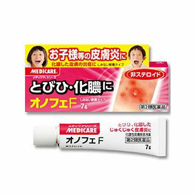 「オノフェF 7g」は、とびひ・化膿の原因菌をスルファジアジンが殺菌し、酸化亜鉛がじゅくじゅくした炎症をおさえ、アラントインが組織の生成を促し、治りを早める軟膏タイプの医薬品です。皮膚は外部の細菌や刺激から私たちの身体を守っていますが、肌にトラブル(かき傷、すり傷、きり傷、湿疹、かぶれなど)が起こっている状態では細菌に感染し化膿しやすくなります。感染や化膿を防ぐためにも、患部を清潔に保ち、さわったり無理やりウミを出すことは避け、早めに治療しましょう。