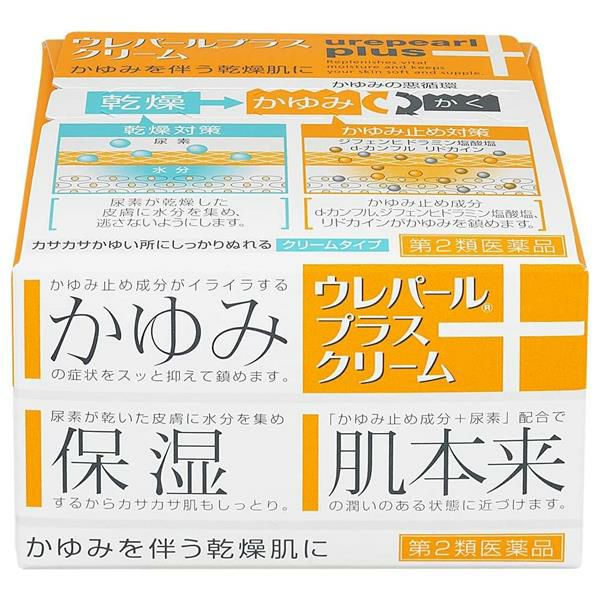 「ウレパールプラスクリーム」は、天然保湿因子の尿素とビタミンE(酢酸トコフェロール)が乾燥肌に水分を保持し、しっとり、なめらかにします。また、3種類のかゆみ止め成分をプラスし、乾燥肌によるかゆみをおさえます。肌になじみやすく、のびのいいクリーム剤です。