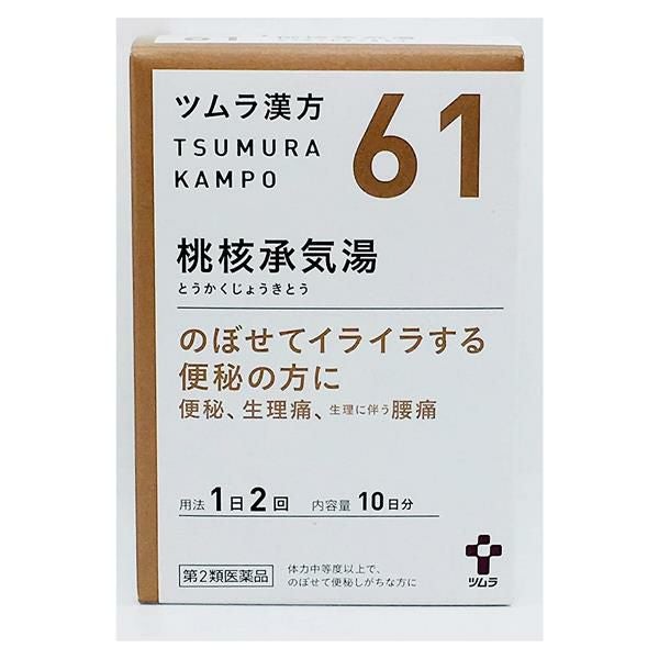「ツムラ漢方 桃核承気湯エキス顆粒 20包」は、生理時や産後のイライラや不安感を鎮める薬です。のぼせがあり、便秘がちな方に適した処方です。「血」の滞りによる生理不順や月経困難症、生理痛、生理時や産後の精神不安のほか、腰痛、高血圧の随伴症状の頭痛・肩こり・めまいの改善にも用いられます。「血」が滞ると「血」が溜まった部分に熱がこもり、さまざまな症状を引き起こします。桃核承気湯は「血」をめぐらせることで熱を分散させ、症状を改善していきます。