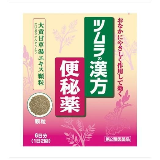 「ツムラ漢方 大黄甘草湯エキス顆粒 12包」は、ダイオウが大腸を刺激してぜん動運動を高め排便を促し、カンゾウが緊張を緩和させて便秘に伴う腹痛や排便時の痛みを和らげます。お通じをつけることで便秘に伴う頭重・のぼせ・湿疹・皮膚炎・ふきでもの(にきび)・食欲不振(食欲減退)・腹部膨満・腸内異常醗酵・痔などの症状を緩和します。