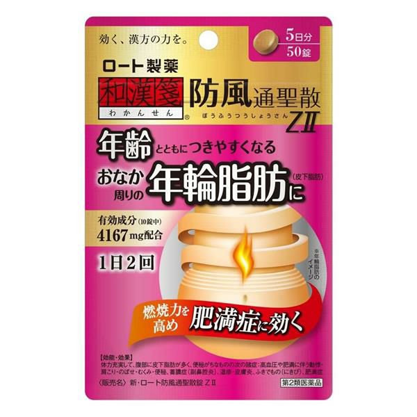 他の画像を見る 年齢とともにつきやすくなる脂肪を燃やして落とす 【第2類医薬品】 新ロート防風通聖散錠ZII 50錠 - ロート製薬 [セルフメディケーション税制対象] [ボウフウツウショウサン/肥満] 定価 ¥ 1,210 販売価格 ¥ 1,173 税込 「新・ロート防風通聖散錠ZII 50錠」は、18種類の生薬からじっくり抽出した有効成分4167mg(10錠中)が、年齢とともにつきやすくなる、おなか周りの年輪脂肪をを内側からしっかり分解・燃焼して、肥満症に効いていきます。 詳細を見る お気に入りに登録する