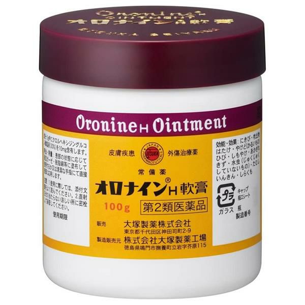 他の画像を見る ニキビ、すり傷、軽いやけどに 【第2類医薬品】 オロナインH軟膏 100g - 大塚製薬 [すり傷/ニキビ] 販売価格 ¥ 1,408 税込 「オロナインH軟膏」は、殺菌効果に優れたクロルヘキシジングルコン酸塩配合の皮膚疾患・外傷治療薬です。 詳細を見る お気に入りに登録する