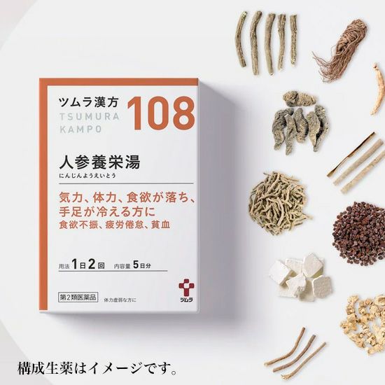 他の画像を見る 気力、体力、食欲が落ち、手足が冷える方に 【第2類医薬品】 ツムラ漢方人参養栄湯エキス顆粒108 10包 - ツムラ [ニンジンヨウエイトウ] 販売価格 ¥ 1,980 税込 在庫切れ 「ツムラ漢方人参養栄湯エキス顆粒108」は、漢方の原典である「和剤局方」に記載されている漢方薬で、体力虚弱で気力、体力、食欲が落ちている方の「手足の冷え」、「食欲不振」、「疲労倦怠」、「貧血」等に用いられています。 詳細を見る お気に入りに登録する