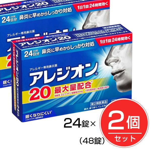 他の画像を見る くしゃみ・鼻汁症状にすぐれた効果を発揮 【第2類医薬品】 アレジオン20 24錠×2個セット (48錠) - エスエス製薬 [セルフメディケーション税制対象] ※ネコポス対応商品 [花粉/鼻のアレルギー症状の緩和] 定価 ¥ 7,876 販売価格 ¥ 3,300 税込 送料無料 ネコポス便対応品 在庫切れ 「アレジオン20 24錠×2個セット」は、エピナスチン塩酸塩を最大量配合で花粉に、1日1回長く効きます。 詳細を見る お気に入りに登録する