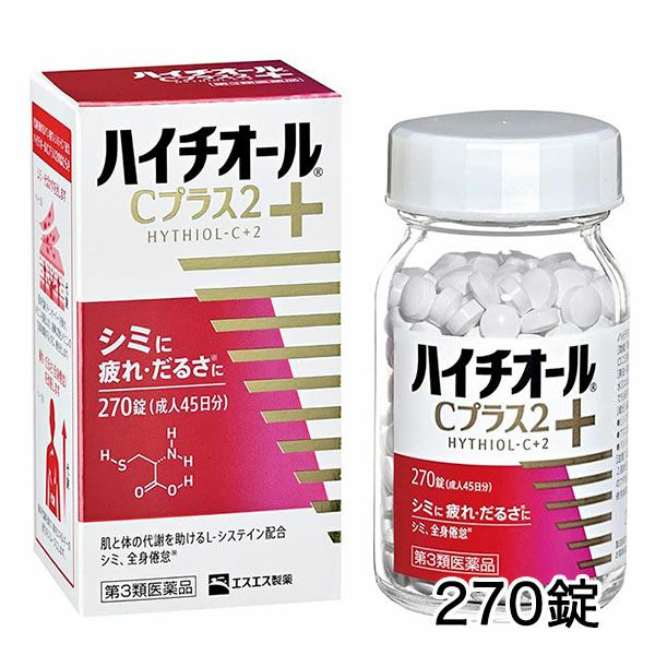 他の画像を見る シミと疲れを改善 【第3類医薬品】 ハイチオールCプラス2 270錠 - エスエス製薬 [しみ/そばかす] 定価 ¥ 6,050 販売価格 ¥ 2,970 税込 在庫切れ 「ハイチオールCプラス2 270錠」は、代謝を助けるアミノ酸・L-システイン配合。 詳細を見る お気に入りに登録する
