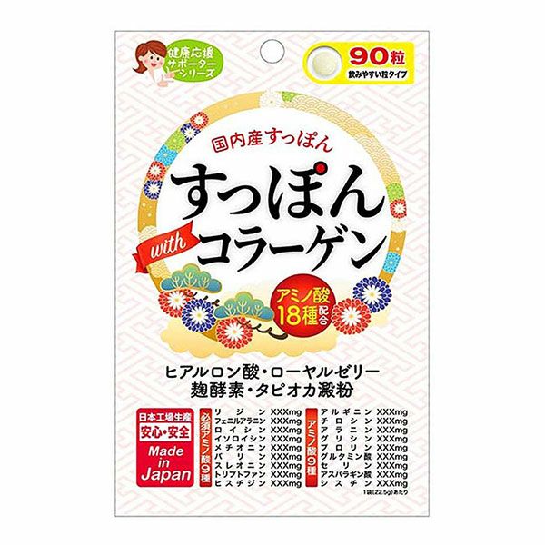 「ジャパンギャルズ すっぽんwithコラーゲン 90粒」は、栄養の宝庫すっぽんと、美容素材として人気のコラーゲンを配合したサプリメントです。また、必須アミノ酸9種を含む18種のアミノ酸をはじめ、ヒアルロン酸・ローヤルゼリー・麹酵素・タピオカ澱粉を配合し、1日3粒でバランス良く手軽に美容と健康をサポートします。