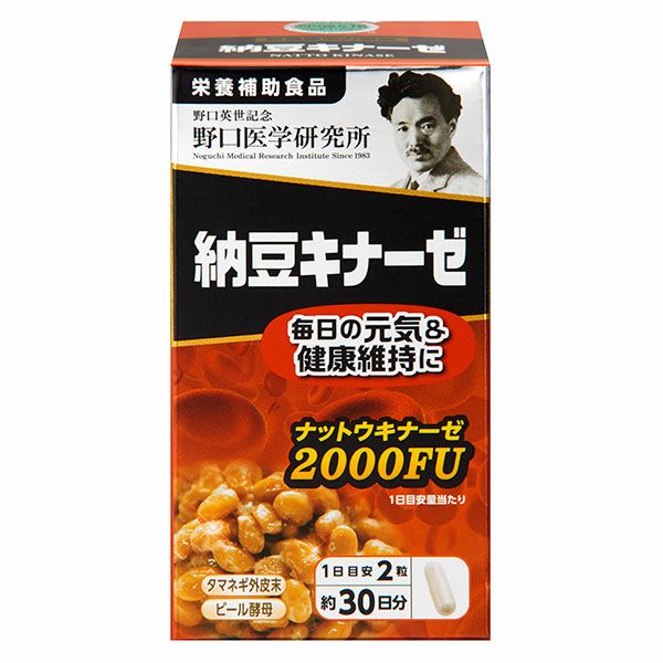「野口医学研究所 納豆キナーゼ 60粒」は、ナットウキナーゼを2,000FU(1日目安量)配合しました。毎日の元気と健康維持をサポートします。 ※本品に使用しているナットウキナーゼは、ビタミンKを除去しています。