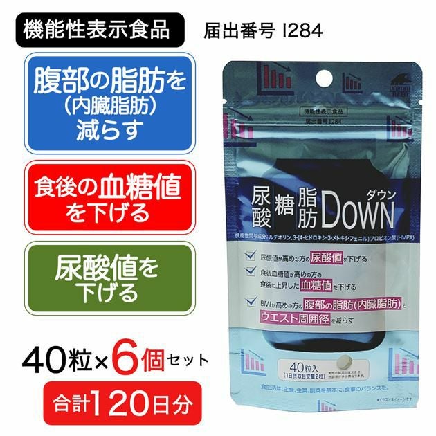 尿酸・糖・脂肪ダウン 40粒×6個セット (合計120日分) [機能性表示食品]【送料無料】 |