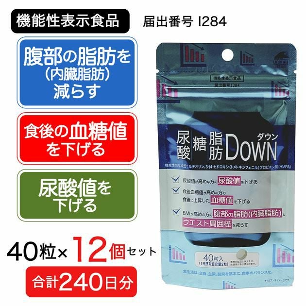 尿酸・糖・脂肪ダウン 40粒×12個セット (合計240日分) [機能性表示食品]【送料無料】 |