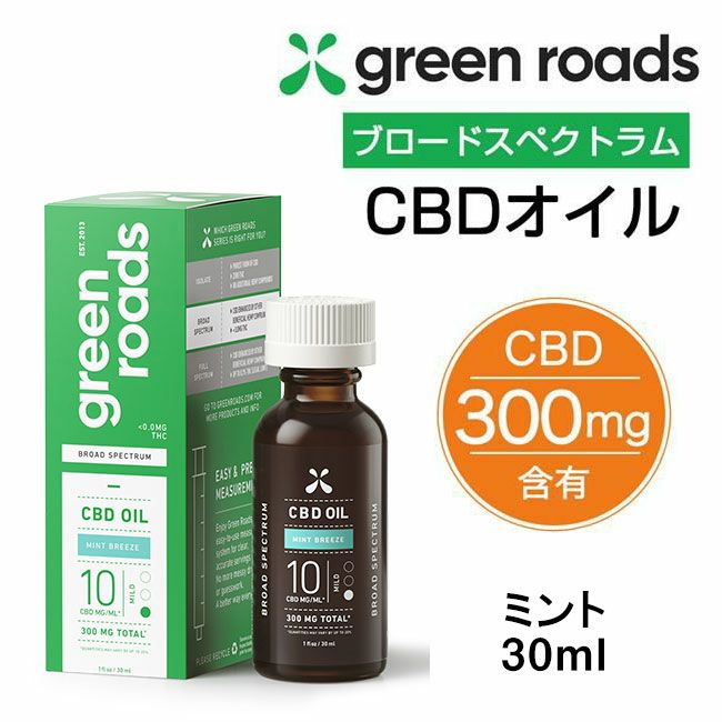 「グリーンローズ CBDオイル ブロードスペクトラム 300mg ミント 30ml」は、ブロードスペクトラム抽出のCBDをトータルで300mg配合しています。1回使用の1mlあたりに10mgのCBDを摂取できます。ココナッツ由来のMCTオイルを配合しており、一般的なオイルよりも消化・吸収スピードが速いのが特徴です。グリーンローズのCBDオイルは薬剤師のチームによって開発され、GMPおよびFDAに登録された施設で製造しています。CBDオイルを初めてお使いいただく方やマイルドな強さを求める方におすすめです。フレーバー:ミント