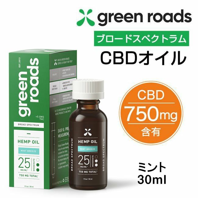 「グリーンローズ CBDオイル ブロードスペクトラム 750mg ミント 30mlブロードスペクトラム抽出のCBDをトータルで750mg配合しています。1回使用の1mlあたりに25mgのCBDを摂取できます。ココナッツ由来のMCTオイルを配合しており、一般的なオイルよりも消化・吸収スピードが速いのが特徴です。グリーンローズのCBDオイルは薬剤師のチームによって開発され、GMPおよびFDAに登録された施設で製造しています。CBDオイルを初めてお使いいただく方やマイルドな強さを求める方におすすめです。フレーバー:ミント