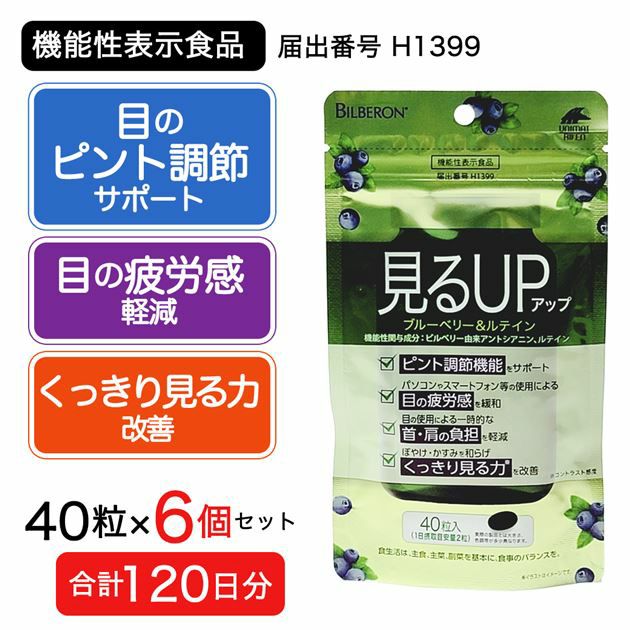 見るアップ ブルーベリー&ルテイン 40粒×6個セット (合計120日分) [機能性表示食品]【送料無料】 |