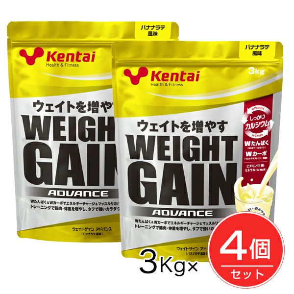 「kentai NEW ウエイトゲインアドバンス バナナラテ風味 3kg」は、ウエイトを増やしたい方のカラダづくりにおすすめのプロテインです。Wたんばく(ホ工イ+カゼイン)・Wカーポ(マルトデキストリン+果糖)が、アスリートの栄養補給をバックアップ。製法を見直し、粉立ちを抑え水にさらりと溶ける顆粒を実現。バナナラテ風味・3kg入。
