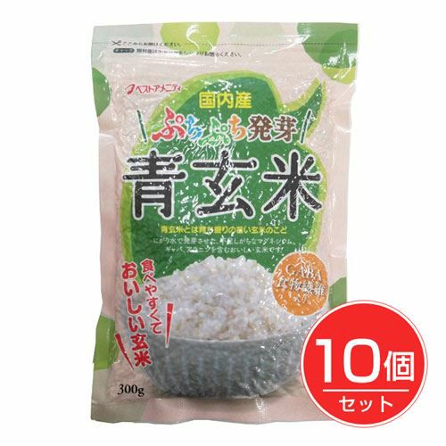 「ぷちぷち発芽青玄米 300g」は、にがり水で発芽させた、不足しがちなマグネシウム、ギャバ、アラニンを含む玄米です。青玄米は育ち盛りの若い玄米のことで、小粒で外皮部分が多いのが特長です。この外皮には食物繊維やビタミンB1、ビタミンE、更に注目の栄養成分であるフィチン酸を含んでいます。300g入。 ★お得な10個セット