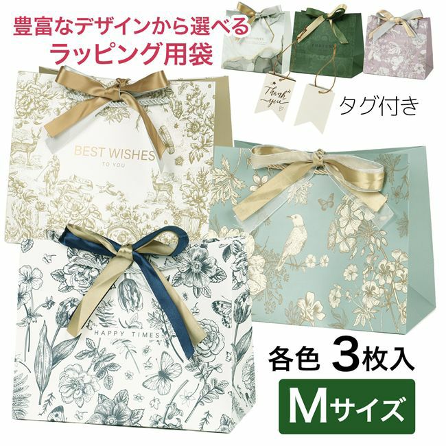 6. ラッピング 袋 リボン付 |プレゼント・ギフト用 おしゃれでかわいい紙袋 マチ付 3枚入 Mサイズ - forever flowers [プレゼント袋/ギフト袋] ※ネコポス対応商品