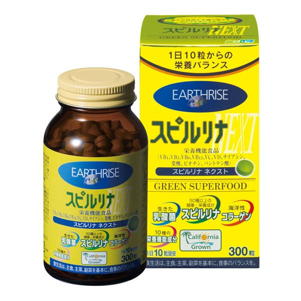 「DICライフテック スピルリナNEXT 300粒」は、スピルリナ、乳酸菌、海洋性コラーゲン、ビタミン10種を強化し、10粒で1日に必要なビタミン量をほぼ補うことができる栄養機能食品です。