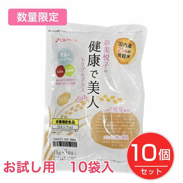 他の画像を見る 奈美悦子の健康で美人 国内産25種雑穀米 トリプルプラス リッチ Rich 15g×10袋×10個セット - ベストアメニティ 販売価格 ¥ 4,980 税込 会員価格あり 送料無料 在庫切れ 「奈美悦子の健康で美人 国内産25種雑穀米 トリプルプラス リッチ Rich 15g×10袋」は、タレントで雑穀アドバイザーの奈美悦子さんがプロデュースした25種雑穀米です。 再入荷お知らせ お気に入りに登録する