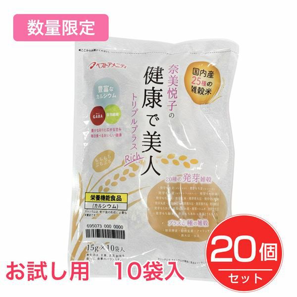 他の画像を見る 奈美悦子の健康で美人 国内産25種雑穀米 トリプルプラス リッチ Rich 15g×10袋×20個セット - ベストアメニティ 販売価格 ¥ 9,720 税込 会員価格あり 送料無料 在庫切れ 「奈美悦子の健康で美人 国内産25種雑穀米 トリプルプラス リッチ Rich 15g×10袋」は、タレントで雑穀アドバイザーの奈美悦子さんがプロデュースした25種雑穀米です。 再入荷お知らせ お気に入りに登録する