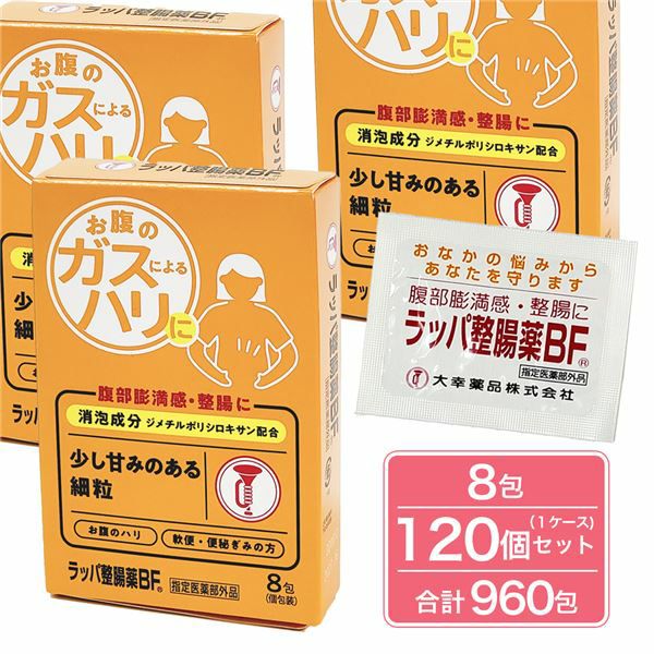 他の画像を見る おなかのハリにや便秘・軟便に [数量限定セール] ラッパ整腸薬BF 8包×120個セット 《指定医薬部外品》 - 大幸薬品 [整腸/便通を整える] 定価 ¥ 47,520 販売価格 ¥ 22,176 税込 送料無料 「大幸薬品 ラッパ整腸薬BF 8包 《指定医薬部外品》」は、おなかがはる・ゴロゴロするなど日頃おなかのガスでお困りの方や便秘気味でおなかかがはるといった方におすすめです。 カートに入れる お気に入りに登録する