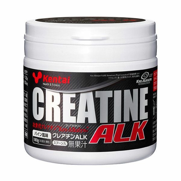 「ケンタイ クレアチンALK 180g」は、水に溶かしても安定性のある新しい製法により生産されたクレアチン(Kre-Alkalyn)を使用し、クレアチンの吸収をサポートするブドウ糖やαリポ酸を組み合わせました。これまでクレアチンで十分な効果が感じられなかった方や、トップレベルでトレーニングするアスリートに特におすすめできる第3世代のクレアチンです。