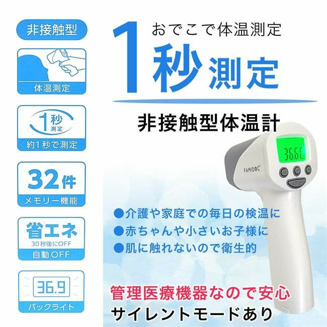 他の画像を見る 非接触型体温計 ファミドックプラス FDIR-V22 (管理医療機器) - 原沢製薬工業 定価 ¥ 6,050 販売価格 ¥ 4,950 税込 会員価格あり 送料無料 「非接触型体温計 ファミドックプラス」は、肌に触れずにたった1秒で測定できる、非接触型の赤外線体温計です。 カートに入れる お気に入りに登録する