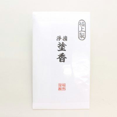 「梅栄堂 極上製塗香 たとう紙入り 15g」は、真言密教などで手足に塗り身体を清めるものです。白檀、丁子、龍脳などの粉末を調合したものです。