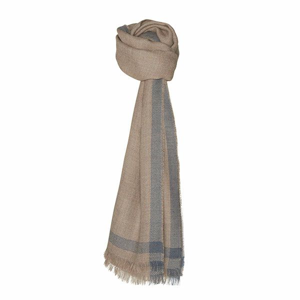 「シルケボーウルドスピンデリ Silkeborg Uldspinderi ベビーアルパカストール ルスティックボーダー ローズサンド 60×200cm」は、選び抜かれた素材とスカンジナビアンデザインが融合したデンマークテキスタイルブランド”Silkeborg Uldspinderi”のベビーアルパカ大判ストールです。なめらかな肌触りと温かさ、高級感ある光沢が特徴です。周囲に施されたラインデザインが首に巻いた際に素敵なアクセントになります。収穫後にペルーの現地工場にて、熟練の職人の手によりハンドメイドで作られています。