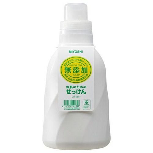 「ミヨシ 無添加 お肌のための洗濯用液体せっけん 1.1L」は、お肌の弱い方や敏感肌のための洗濯を考えて作った無添加の液体せっけんです。衣類などの繊維を傷めずに洗い上げるから、肌ざわりがやさしく、チクチク感もありません。柔軟剤を使用しなくても、ふんわりと仕上がります。サトウキビ由来のバイオマスプラスチックボトル使用。