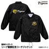 阪神タイガースの2025年セントラルリーグ優勝記念コーチジャケット。左胸に優勝ロゴ、背中は阪神タイガースのロゴデザイン。 カラーはブラック、サイズはS、M、L、XLの4サイズ展開。高級感あふれる光沢感とパリッとしたハリ感のあるタフタ生地、トリコット起毛のライナー付きでドットボタンは金属製のアメリカンタイプを採用。 ドットボタン、ドローコード、ステッチワークなどディテールにこだわりながら、90年代のストリートシーンを想わせるベーシックなコーチジャケットです。 ■阪神承認グッズ