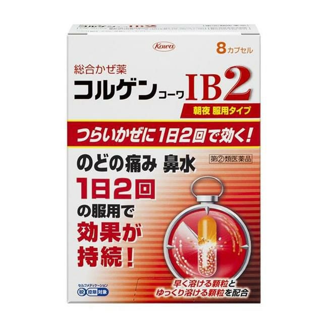 他の画像を見る のどの痛み、鼻水に1日2回の服用で効果が持続 【指定第2類医薬品】 コルゲンコーワIB2 8カプセル - 興和 [セルフメディケーション税制対象] [発熱/のどの痛み] 定価 ¥ 1,320 販売価格 ¥ 952 税込 会員価格あり 在庫切れ 「コルゲンコーワIB2 8C」は、のどの痛み、鼻水に1日2回の服用で効果が持続します。 詳細を見る お気に入りに登録する