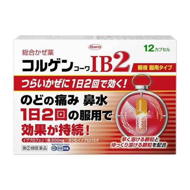 他の画像を見る のどの痛み、鼻水に1日2回の服用で効果が持続 【指定第2類医薬品】 コルゲンコーワIB2 12カプセル - 興和 [セルフメディケーション税制対象] [発熱/のどの痛み] 定価 ¥ 1,760 販売価格 ¥ 1,270 税込 会員価格あり 在庫切れ 「コルゲンコーワIB2 12C」は、のどの痛み、鼻水に1日2回の服用で効果が持続します。 詳細を見る お気に入りに登録する