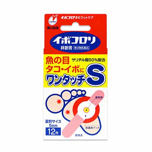 他の画像を見る 魚の目・タコ・イボの除去に 【第2類医薬品】 イボコロリ絆創膏 ワンタッチS 12枚 - 横山製薬 ※ネコポス対応商品 [魚の目/たこ] 定価 ¥ 1,133 販売価格 ¥ 847 税込 ネコポス便対応品 「イボコロリ絆創膏 ワンタッチS 12枚」は、サリチル酸の角質軟化溶解作用を利用した医薬品(角質剥離剤)です。 詳細を見る お気に入りに登録する