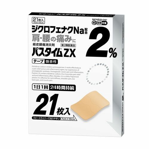 他の画像を見る 肩、腰の痛みに 【第2類医薬品】 パスタイムZX 21枚 - 祐徳薬品工業 [セルフメディケーション税制対象] [関節痛/筋肉痛] 定価 ¥ 2,640 販売価格 ¥ 2,376 税込 「パスタイムZX 21枚」は、ジクロフェナクナトリウムを2%配合したテープ剤です。 詳細を見る お気に入りに登録する