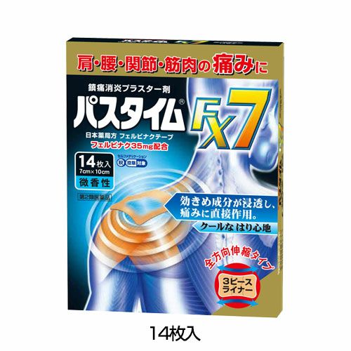 他の画像を見る フェルビナク配合。肩・腰・関節・筋肉の痛みに 【第2類医薬品】 パスタイムFX7 35枚 - 祐徳薬品工業 [セルフメディケーション税制対象] [関節痛/筋肉痛] 定価 ¥ 2,310 販売価格 ¥ 2,079 税込 「パスタイムFX7 35枚」は、フェルビナクを1枚あたり35mg配合した鎮痛消炎プラスター剤です。 詳細を見る お気に入りに登録する