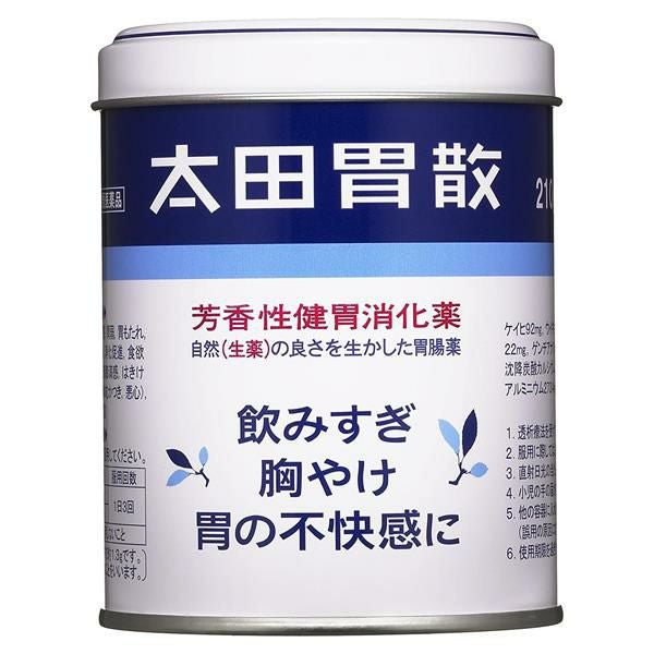 他の画像を見る 生薬の良さを生かした、長年愛用されている総合胃腸薬 【第2類医薬品】 太田胃散 210g - 太田胃散 [飲み過ぎ/胸やけ] 定価 ¥ 1,848 販売価格 ¥ 1,755 税込 在庫切れ 「太田胃散210g」は、7種類の健胃生薬の効き目が、弱った胃を元気にし、胃もたれ、二日酔いのむかつきなどの不快感を取り除きます。 詳細を見る お気に入りに登録する