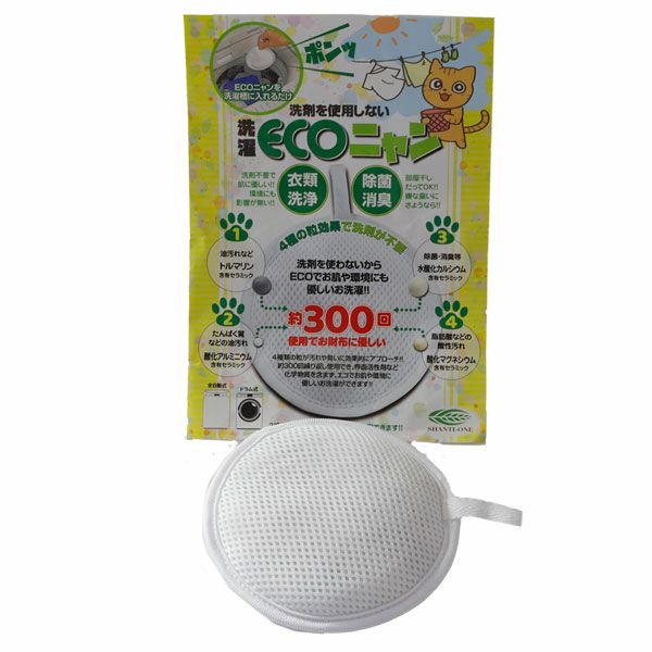 他の画像を見る シャンティワン 洗濯ECOニャン - シャンティワン [洗剤を使わない/臭いがつかない] ※ネコポス対応商品 販売価格 ¥ 1,980 税込 会員価格あり 送料無料 ネコポス便対応品 「洗濯ECOニャン」は、洗剤を使用せず、タンパク汚れ・油汚れ・脂肪酸などの汚れを溶出・分解する、酸化アルミニウム含有セラミック、酸化マグネシウム含有セラミック・トルマリン含有セラミック+除菌消臭効果の水酸化カルシウム含有セラミックの4種類の粒をバランスよく配合し、汚れや臭いに効果的にアプローチします。 カートに入れる お気に入りに登録する