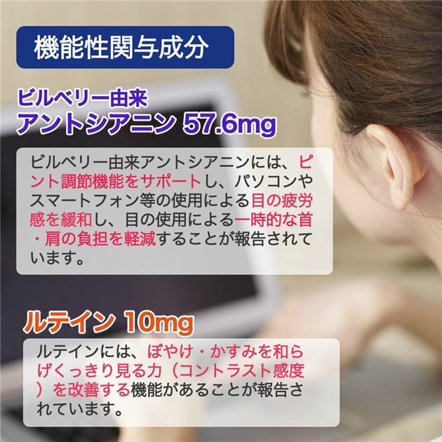 他の画像を見る 目のピント調節やクッキリ見るをサポート 見るアップ ブルーベリー&ルテイン 40粒×12個セット (合計240日分) [機能性表示食品] - ユニマットリケン [目のピント調節/目の疲労感軽減] 定価 ¥ 21,772 販売価格 ¥ 15,800 税込 会員価格あり 送料無料 在庫切れ 「見るアップ ブルーベリー&ルテイン 40粒×12個セット (合計240日分) [機能性表示食品] 」は、ビルベリーとルテインを配合し、ピント調節機能をサポート、目の疲労感を緩和、ぼやけ・かすみを和らげくっきり見る力(コントラスト感度)を改善する機能性表示食品です(届出番号 H1399)。 再入荷お知らせ お気に入りに登録する
