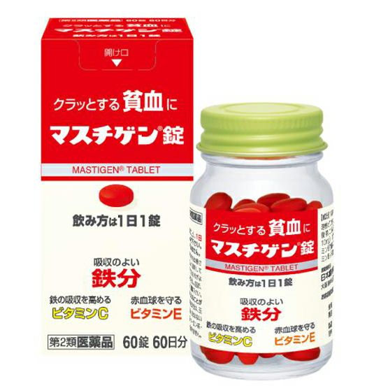 他の画像を見る クラっとする貧血に 【第2類医薬品】 マスチゲン錠 60錠 - 日本臓器製薬 [貧血用薬] 定価 ¥ 2,860 販売価格 ¥ 2,774 税込 「マスチゲン錠 60錠」は、鳥レバー111gまたはホウレン草500g中に含まれる鉄分と同量の鉄分10mgを1錠中に配合で、貧血が原因の疲れ・だるさを治します。 詳細を見る お気に入りに登録する