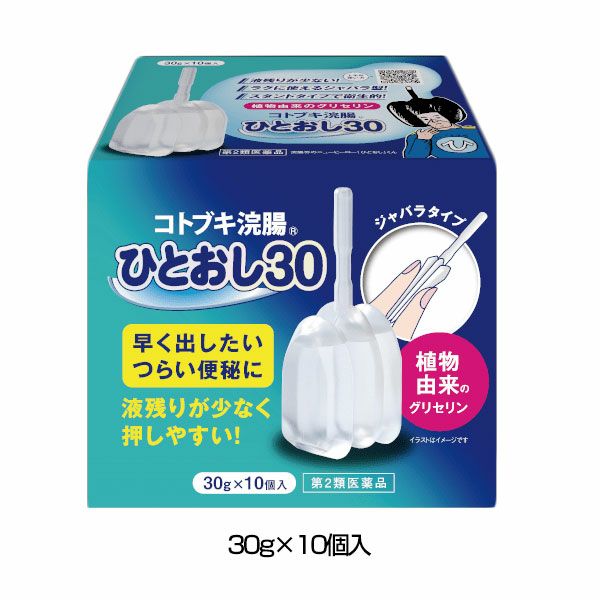 他の画像を見る 簡単に押しつぶせるジャバラ型浣腸 【第2類医薬品】 コトブキ浣腸ひとおし30 30g×10個入 - ムネ製薬 [便秘] 販売価格 ¥ 1,145 税込 「コトブキ浣腸ひとおし 30g×10個入」は、日本初のジャバラ型浣腸です。 詳細を見る お気に入りに登録する