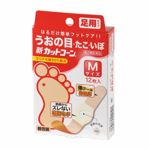 他の画像を見る うおの目、たこ、いぼに貼るだけ 【第2類医薬品】 新カットコーン Mサイズ 12枚 - 祐徳薬品工業 [うおの目/たこ] 定価 ¥ 1,012 販売価格 ¥ 910 税込 「新カットコーン Mサイズ 12枚」は、サリチル酸を50%配合した、うおの目・たこ・いぼ取り用の医薬品です。 詳細を見る お気に入りに登録する