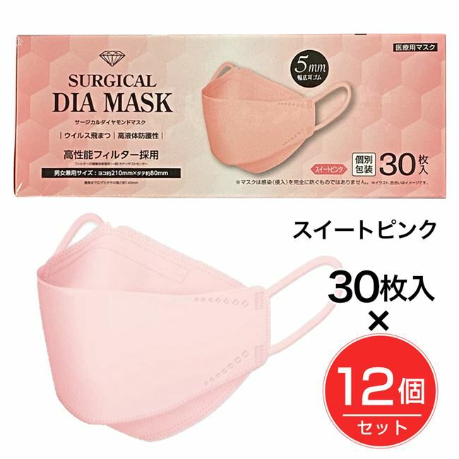 他の画像を見る ダイヤモンド立体構造マスク IDK サージカルダイヤモンドマスク スイートピンク 30枚×12個セット - IDK [サージカルマスク/医療用JIS規格クラス3] 定価 ¥ 10,533 販売価格 ¥ 7,260 税込 送料無料 「サージカルダイヤモンドマスク スイートピンク 30枚」は、ダイヤモンド立体構造で口元とマスクの接触による不快感やメイク崩れを軽減します。 カートに入れる お気に入りに登録する