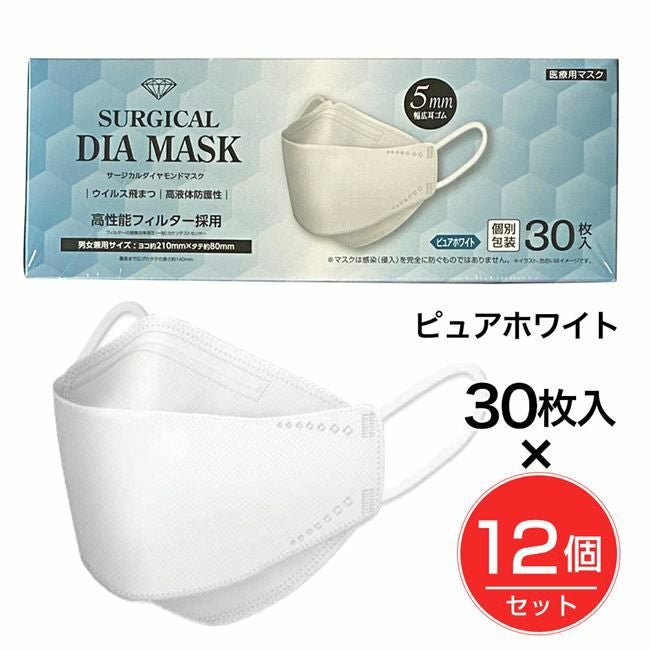 他の画像を見る ダイヤモンド立体構造マスク IDK サージカルダイヤモンドマスク ピュアホワイト 30枚×12個セット - IDK [サージカルマスク/医療用JIS規格クラス3] 定価 ¥ 10,533 販売価格 ¥ 7,260 税込 送料無料 「サージカルダイヤモンドマスク ピュアホワイト 30枚」は、ダイヤモンド立体構造で口元とマスクの接触による不快感やメイク崩れを軽減します。 カートに入れる お気に入りに登録する