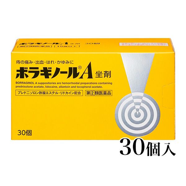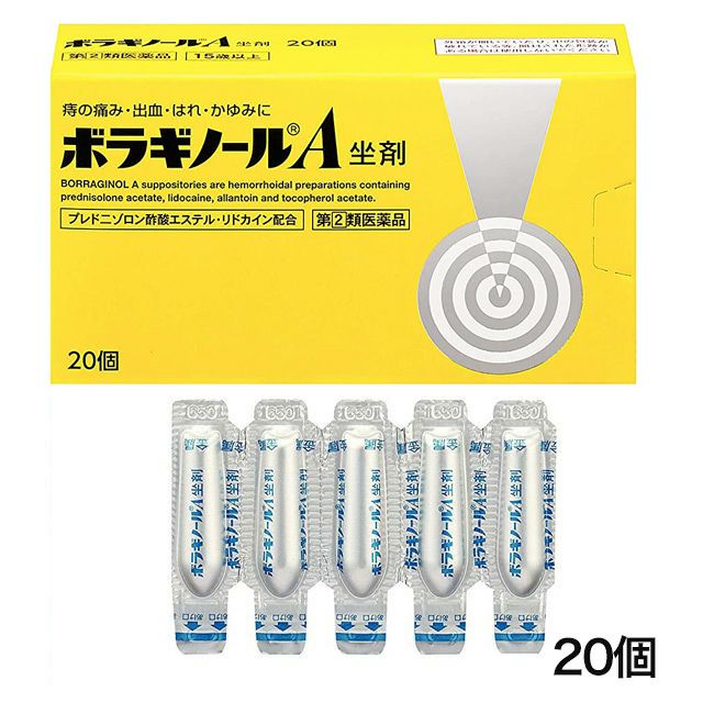 他の画像を見る 主に肛門内側の痔に。4つの有効成分の効果 【指定第2類医薬品】 ボラギノールA坐剤 20個入 - 天藤製薬 [外用痔疾用薬/いぼ痔] 定価 ¥ 3,080 販売価格 ¥ 2,035 税込 在庫切れ 「ボラギノールA坐剤 20個入」は、4種の成分がはたらいて、痔による痛み・出血・はれ・かゆみにすぐれた効果を発揮します。 詳細を見る お気に入りに登録する